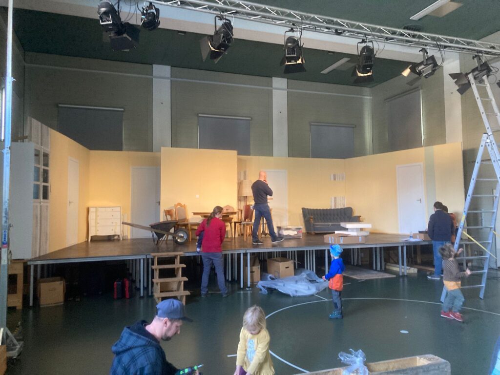Am 28. März haben unsere Helfer und wir wieder viel gearbeitet. Wir haben die Bühne aufgestellt mit allem was dazugehört: Kulisse, Beleuchtung und Einrichtung. Ein herzliches Dankeschön gilt all unseren fleissigen Helfern!